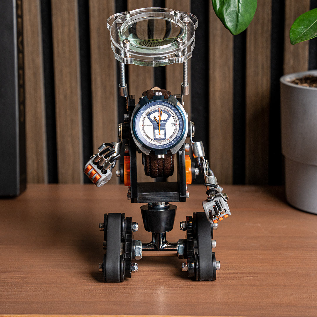 Meet our Robotoy. The Robotoy is the ultimate watch stand for your precious watch. The arms and hands of the robot can be changed to a position of your choosing and it will give a different character to the Robotoy.