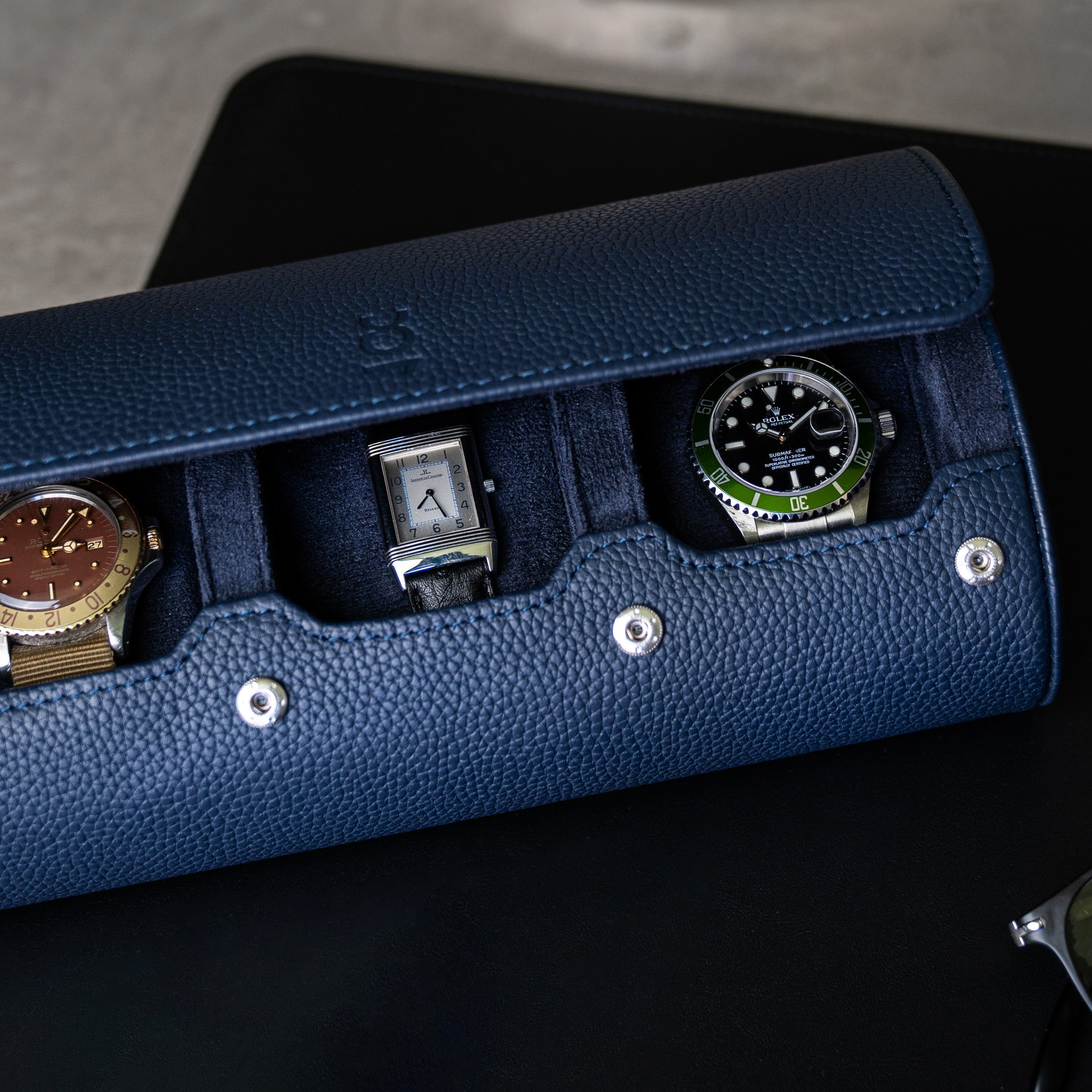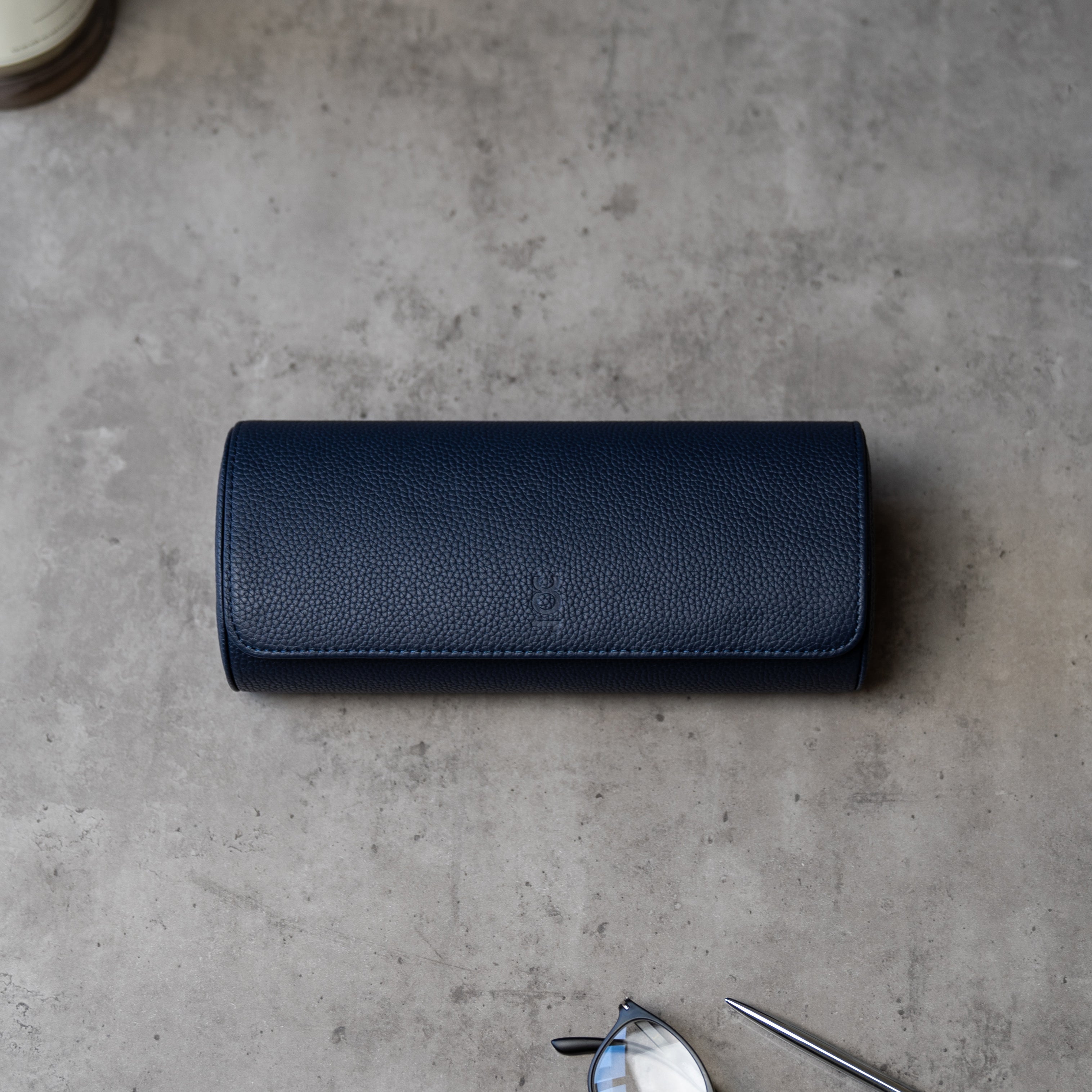 Travel Watch Roll Large - Navy Blue Litchi