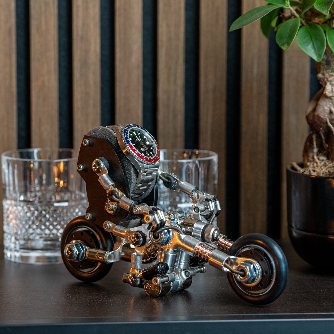 The Robotoy Motorbike is next level fun! Your favorite watch looks even more cool in the “easy rider” position. A true piece of art displaying your watch!