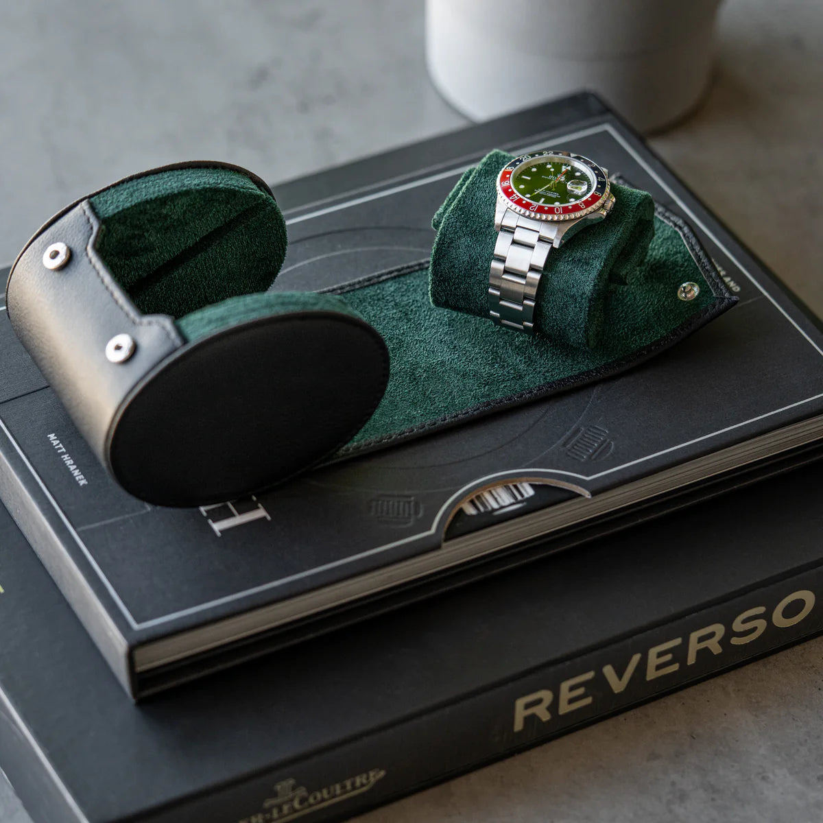Two Slot Watch Roll - All Black Saffiano