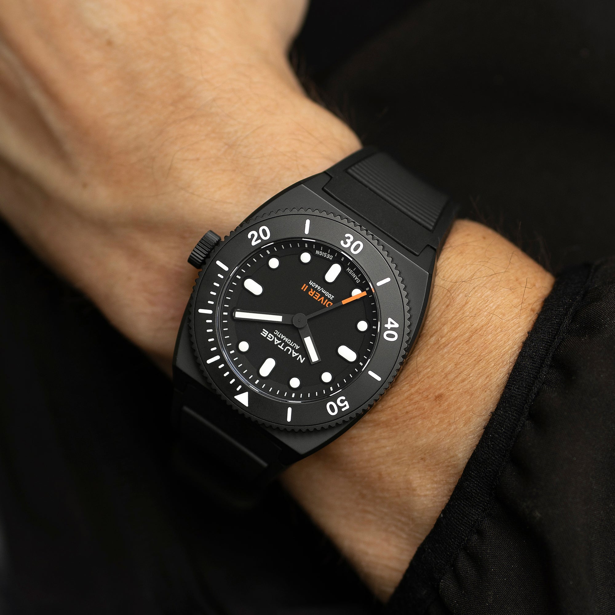The Nautage Diver II is built for those who live to explore. Inspired by the success of the Diver I, this next chapter combines rugged capability with refined design, making it as ready for the deep sea as it is for everyday adventures. Its bold finishes, sharper details, and solid engineering create a watch that thrives under pressure while looking unmistakably contemporary on the wrist. The Diver II is more than a companion — it’s a trusted tool built for journeys, designed to last, and destined to become a standout piece in the collection of any modern explorer.
