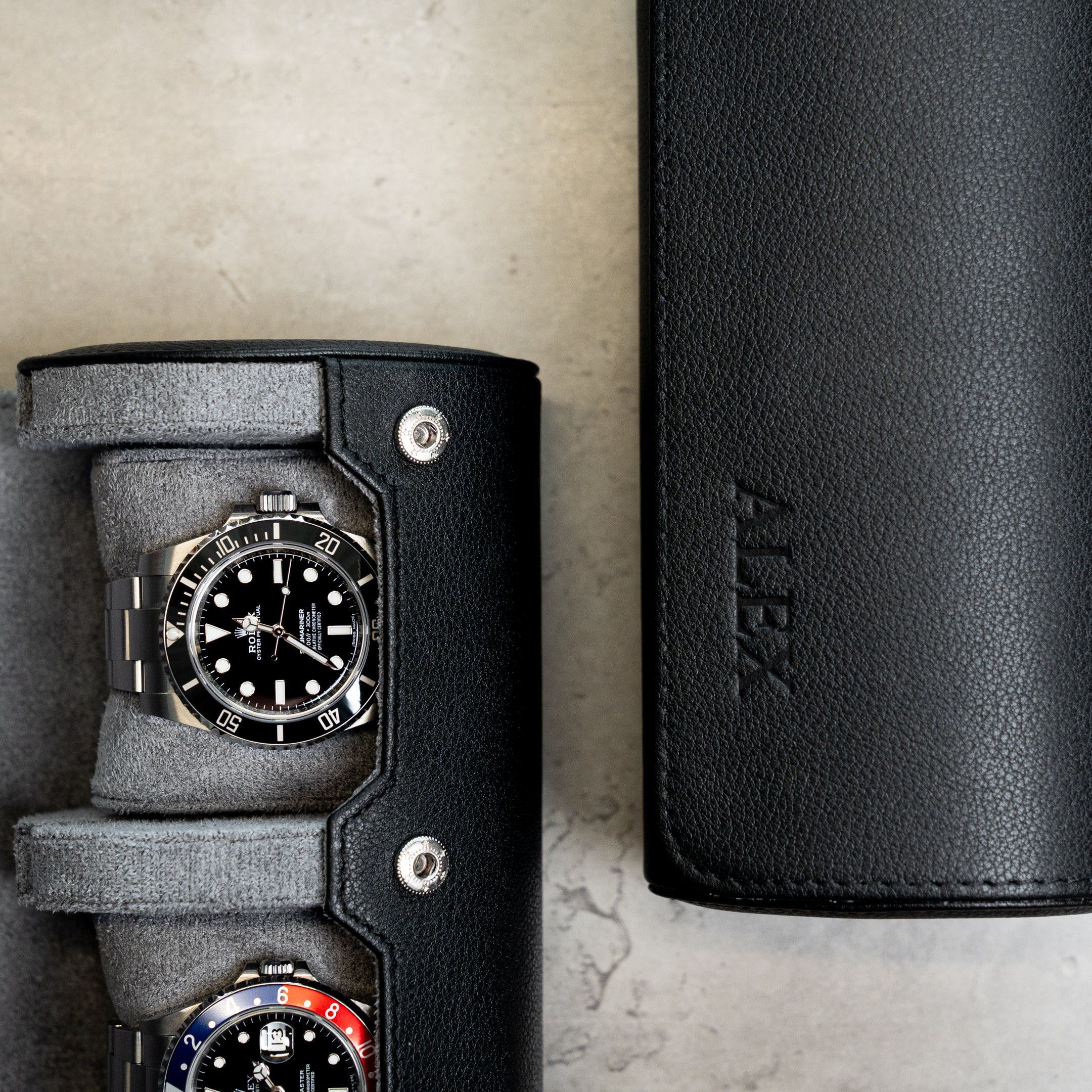 The watch roll comes with soft velvet cushions with slide-in rails that guarantees a snug and secure watch carrying roll.