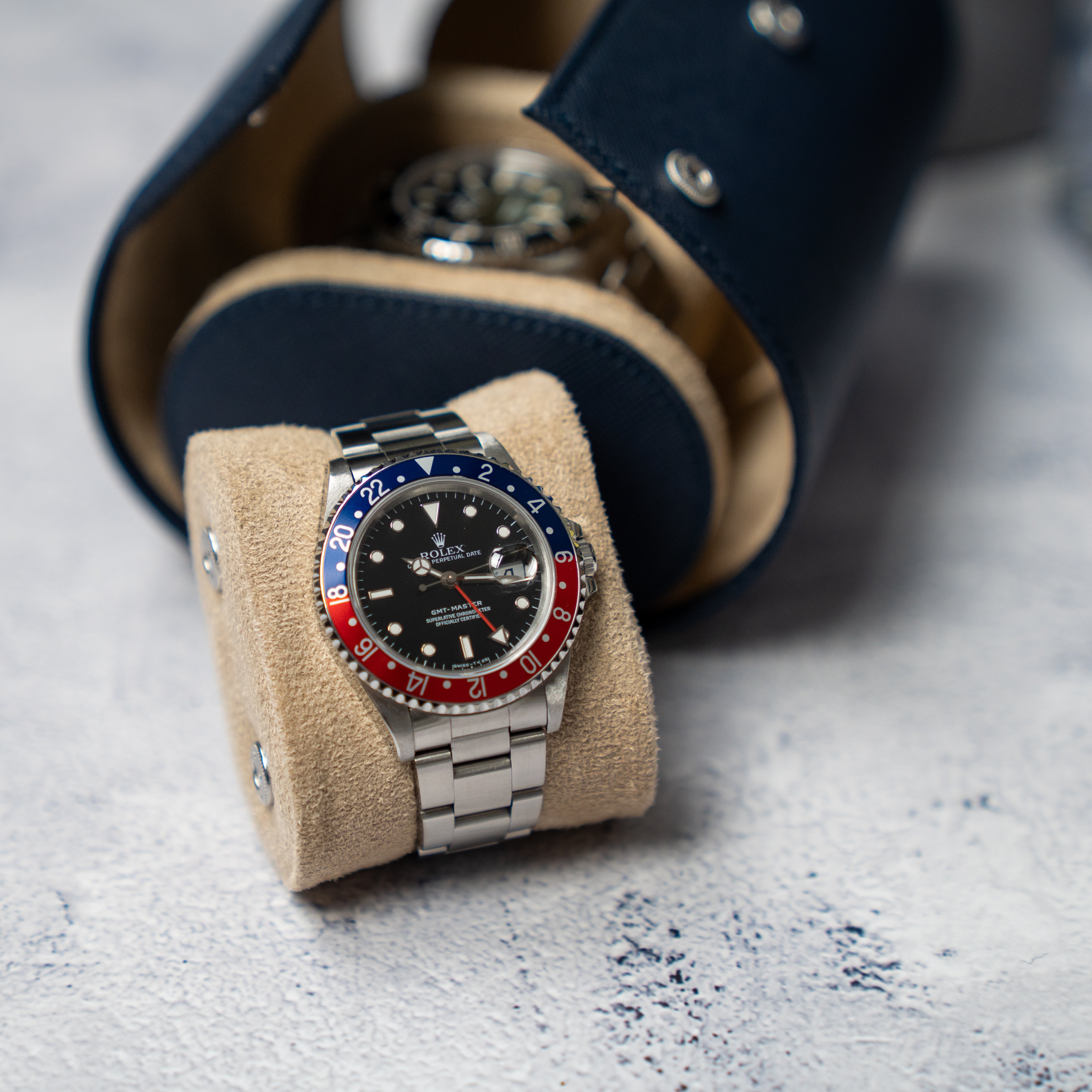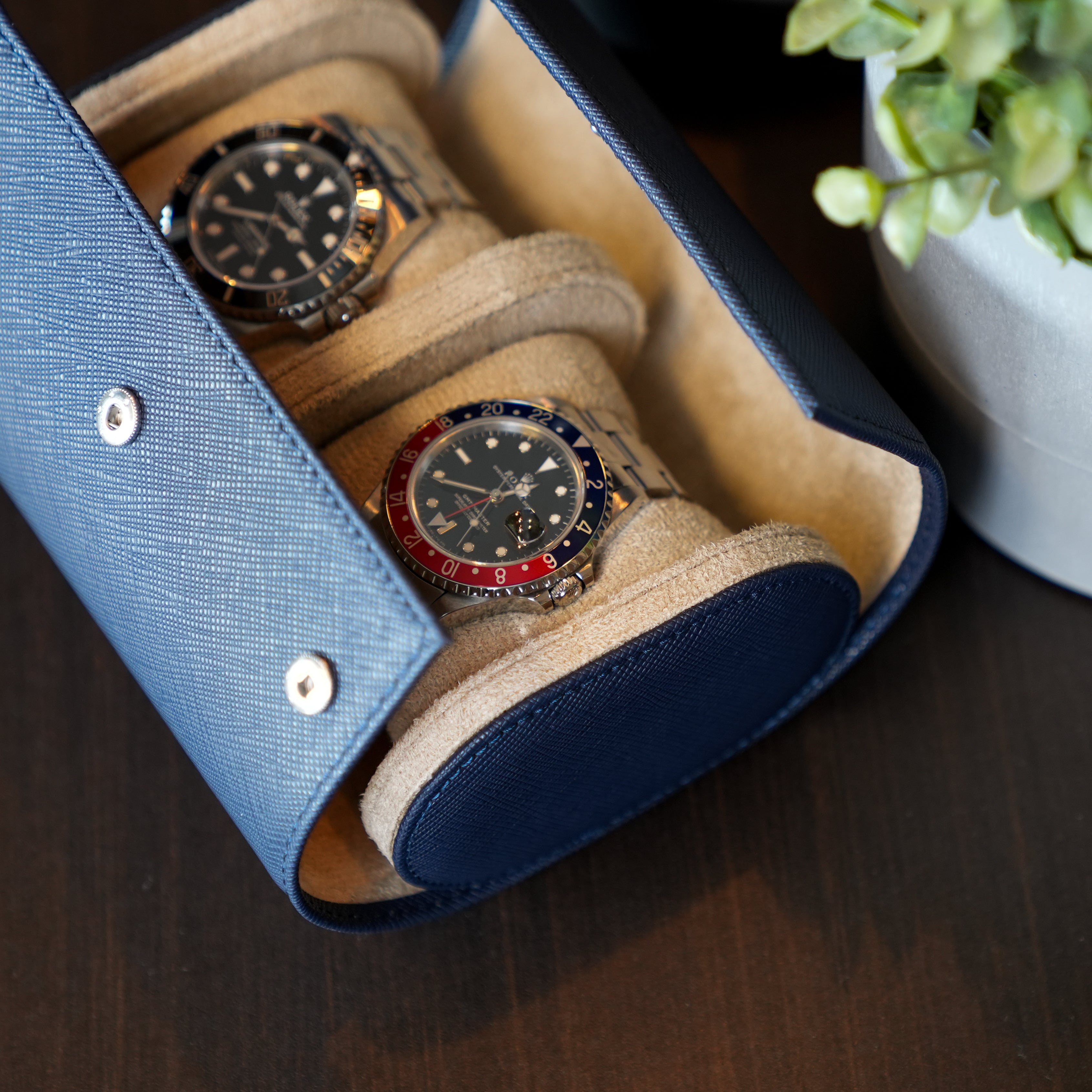 The Two Slot Watch Roll is the perfect home for your favourite watches. It is ideal to carry your watches with you on any occasion, or for daily storage. It is handmade with fine genuine saffiano leather, which is a long-lasting leather material commonly used by luxury brands.