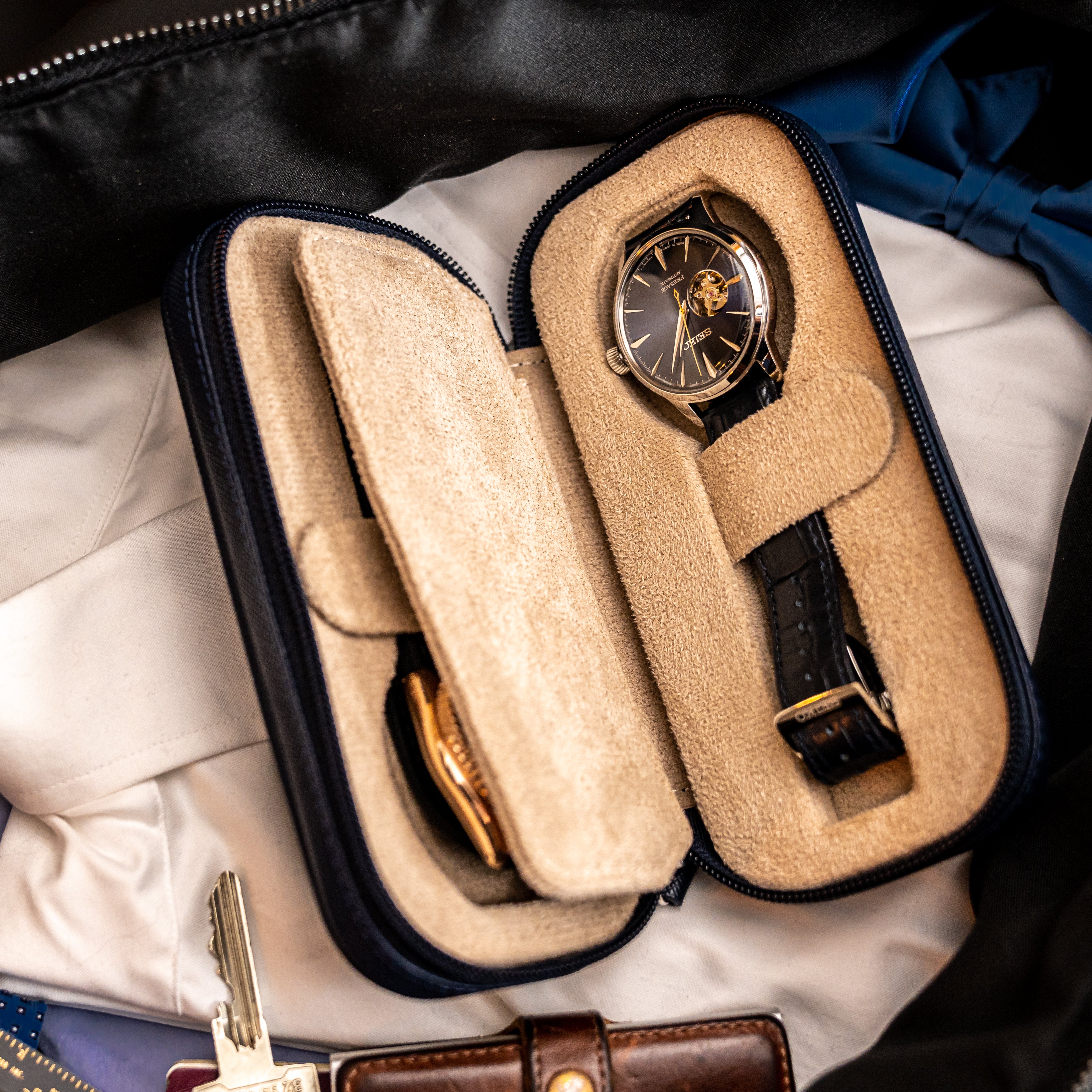 Watch Case For 2 Watches - Navy Blue