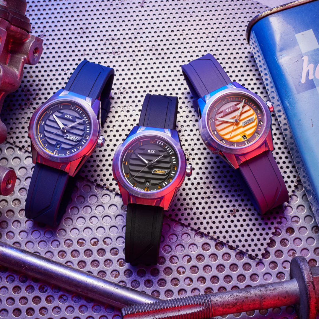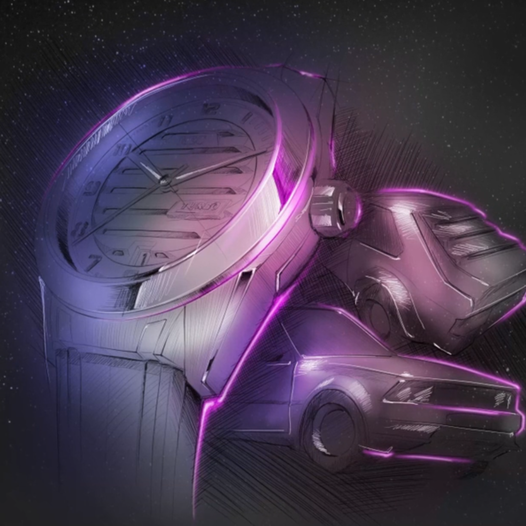 The TURBO PurpleNeon is a Swiss-made timepiece inspired by the vibrant spirit of ‘Turbo era’ cars from the 1980s.