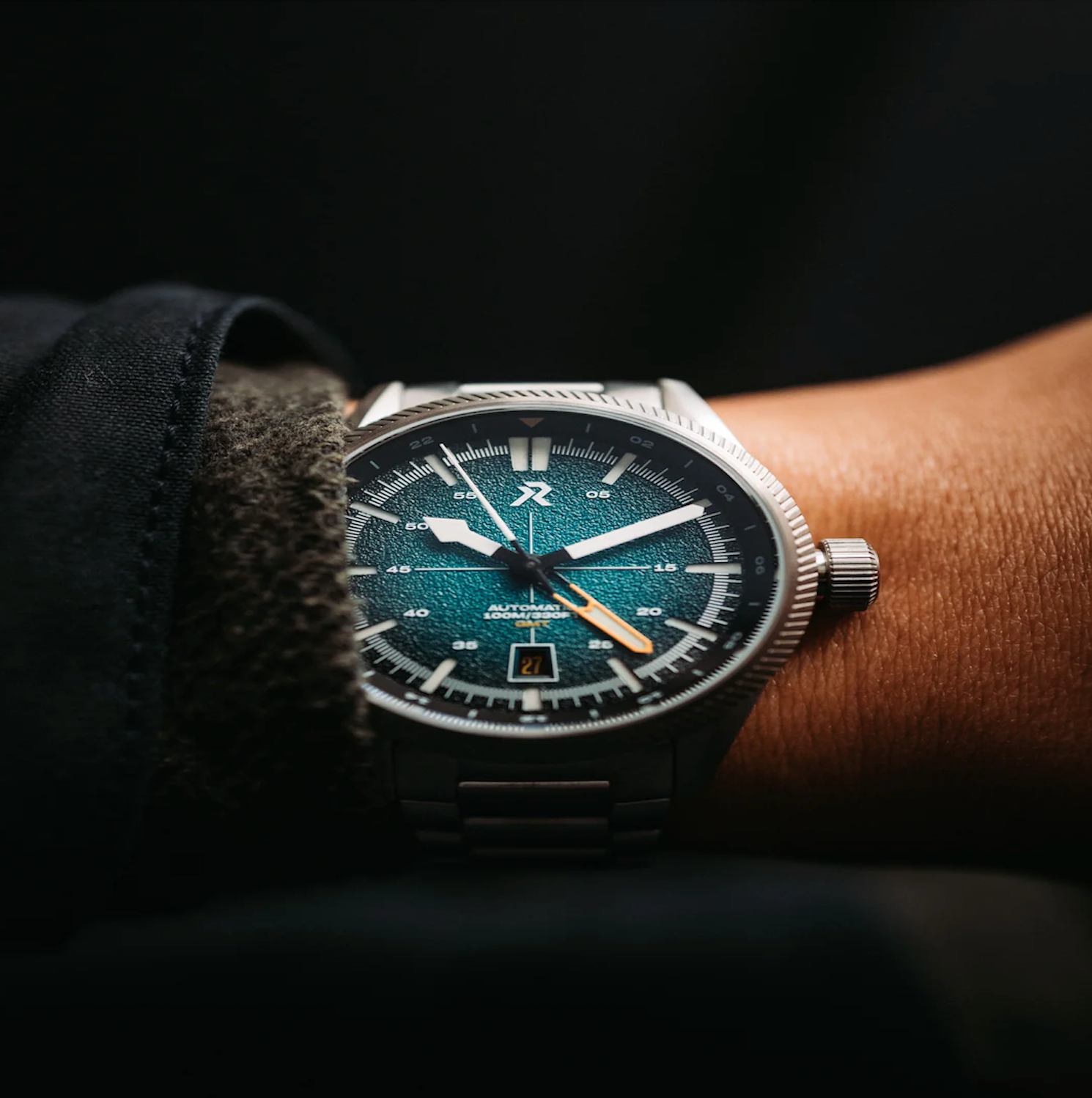 One glance at the Fortitude GMT and you'll know why it's the pilot's watch. Featuring a jet turbine inspired bezel, signature hands & indexes, a sandwich dial with generous lume, and an extra-large crown, whether you're in the cockpit, jump seat or backseat, you'll always know when it's time for take-off. Prioritizing legibility, the custom handset for ‘local time’ and a prominent ‘home time’ hand ensures you'll never lose a minute crossing borders or timezones.