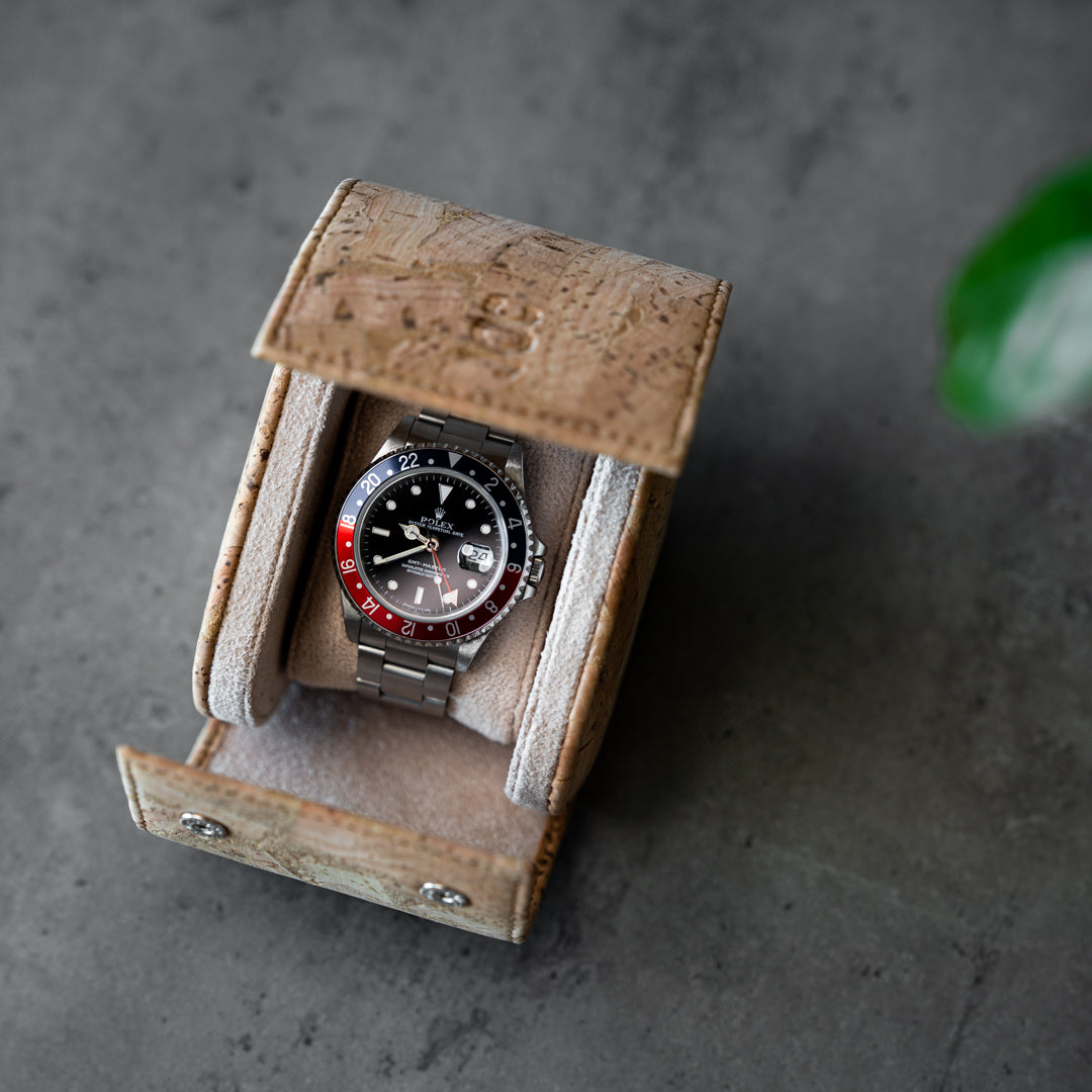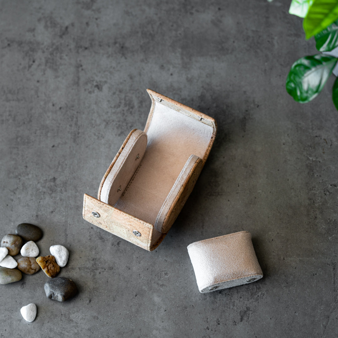 This single watch roll is handmade in Tuscany, Italy with premier craftsmanship and locally sourced cork leather for the exterior finish ensuring your watch are safely stored and protected.