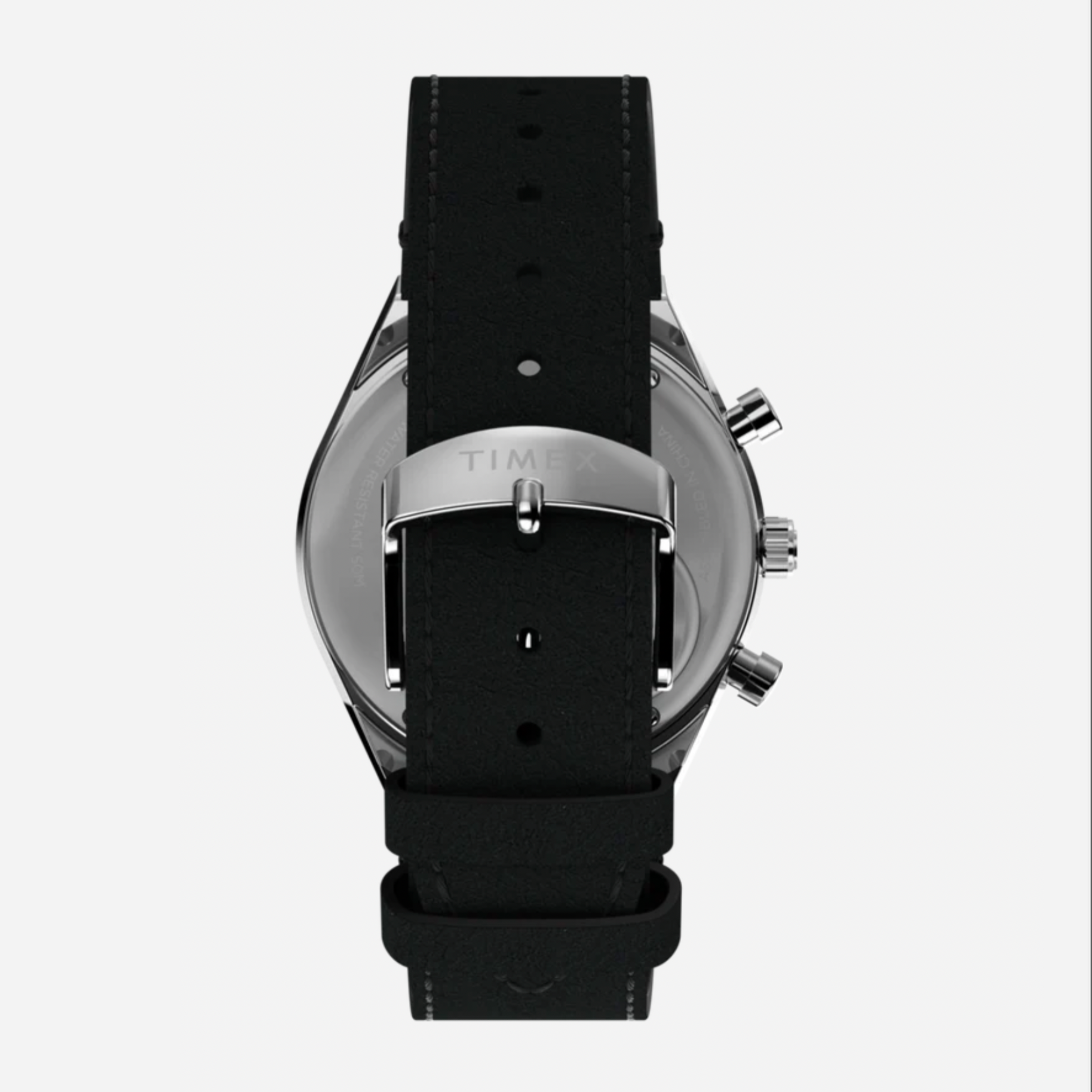 I spy Snoopy! Your favorite beagle makes an unexpected appearance on the 9 o’clock sub-dial of our high-performing Q Timex® Chronograph. This timepiece celebrates the endurance of our legendary 1970s Q Timex, equipped with an ultra-precise chronograph movement and tachymeter bezel for determining elapsed time and average speed like the greatest daredevils in motorsports. Contrasting sub-dials, a date feature, hand-applied dimensional indices, and an updated Q Timex logo stand beautifully against a white dial, while an eco-friendly black leather strap sourced from the Leather Working Group® (LWG), stainless-steel crown, and brushed and polished 40mm recycled stainless-steel case bring dynamism and durability to its retro construction.