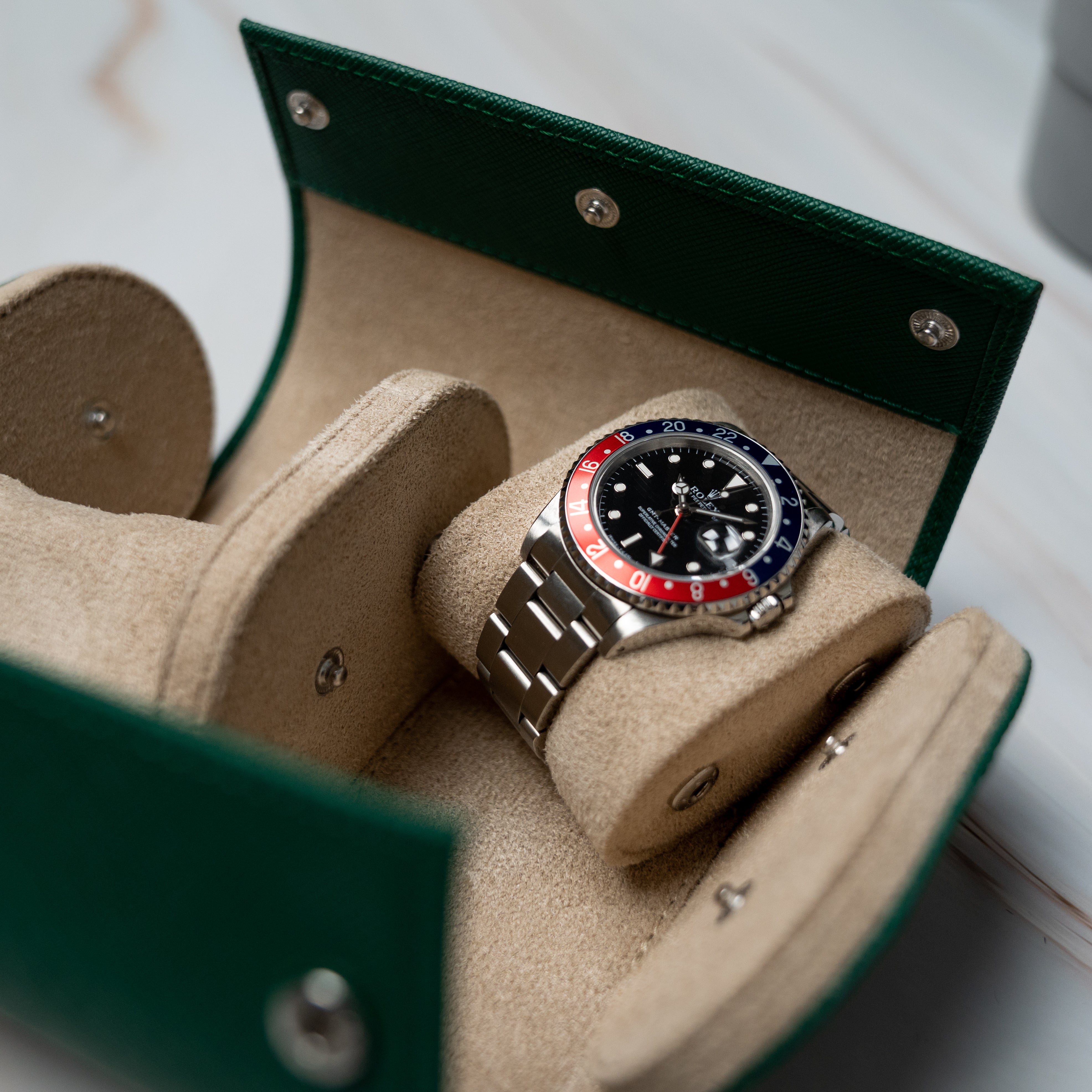 Two Slot Watch Roll - Green Saffiano